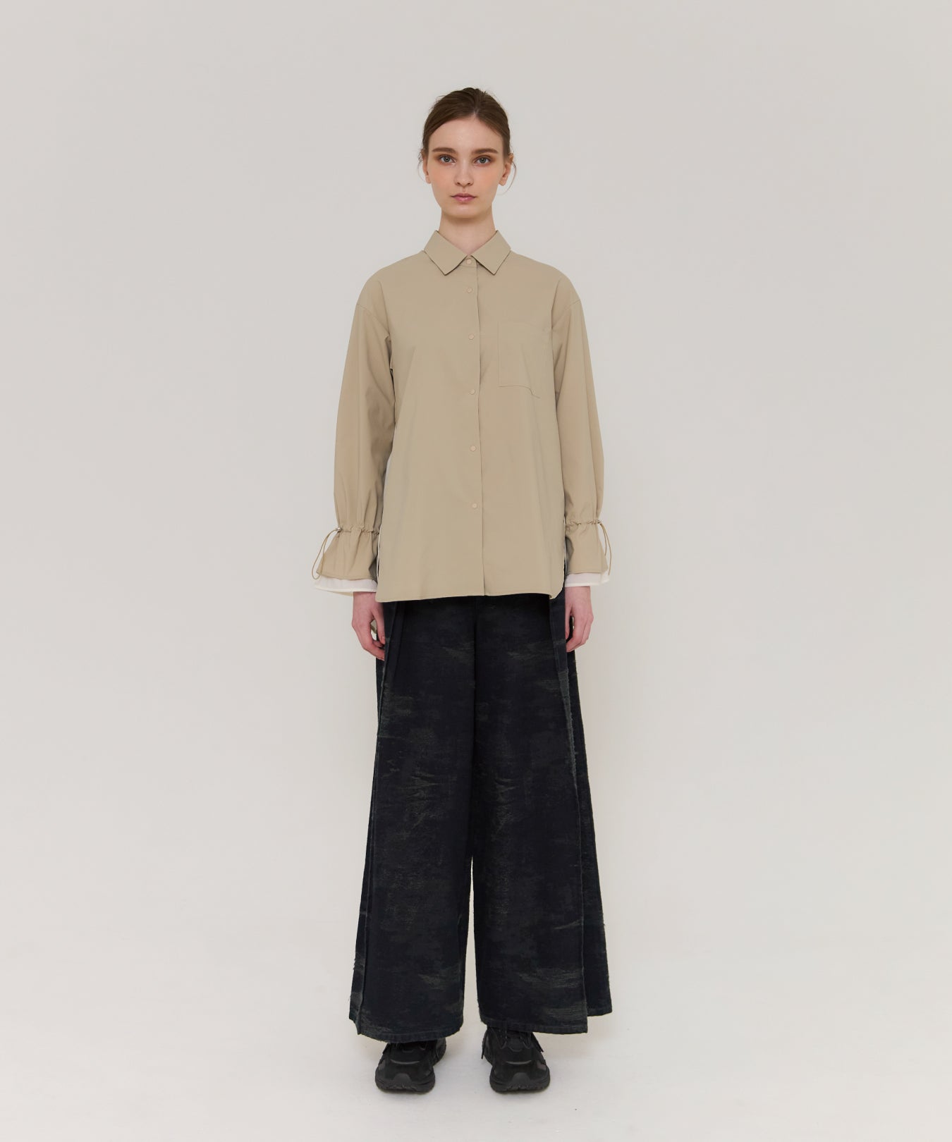 ストレッチの効いた生地はシワになりにくく、洗っても型崩れしにくい。