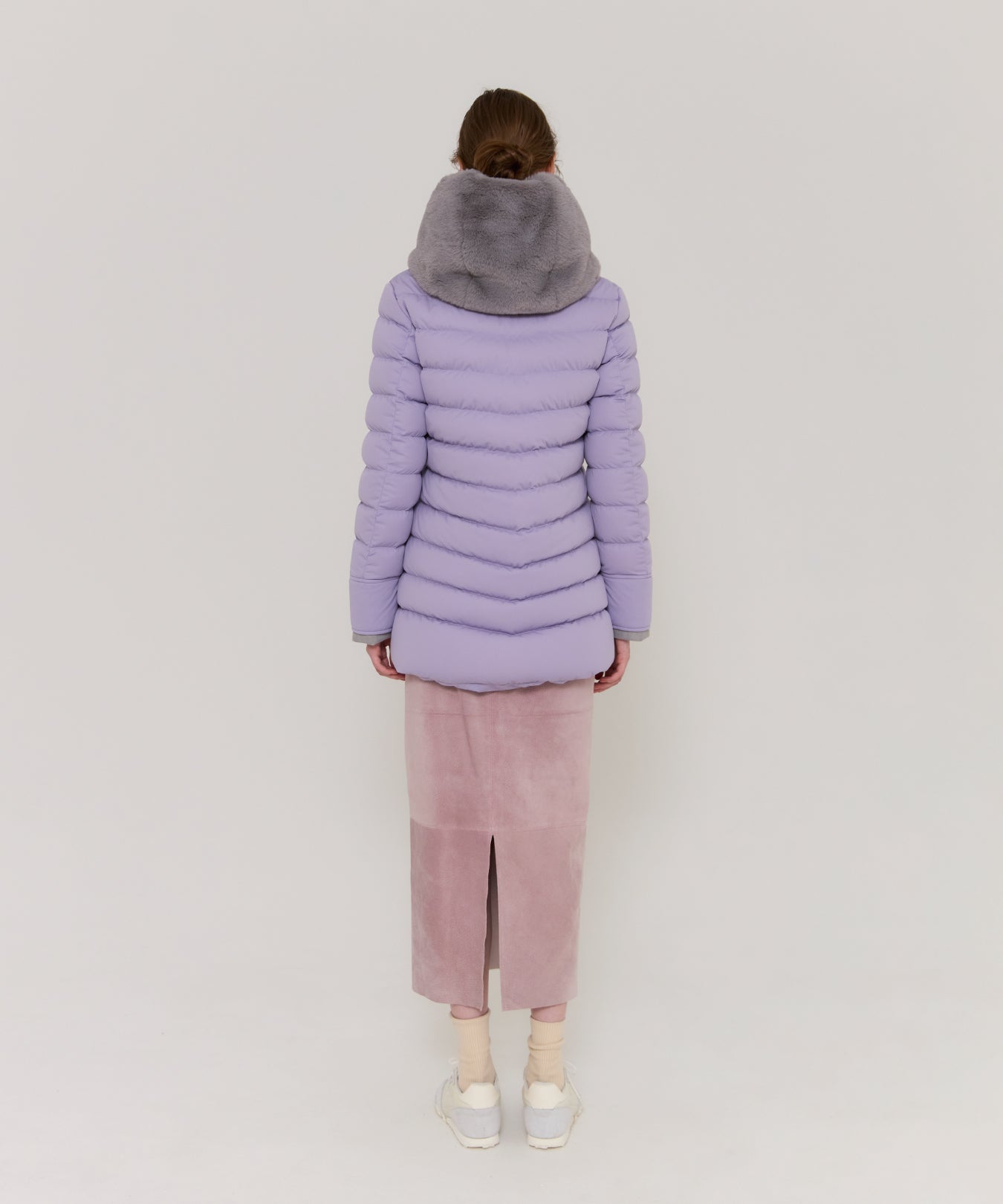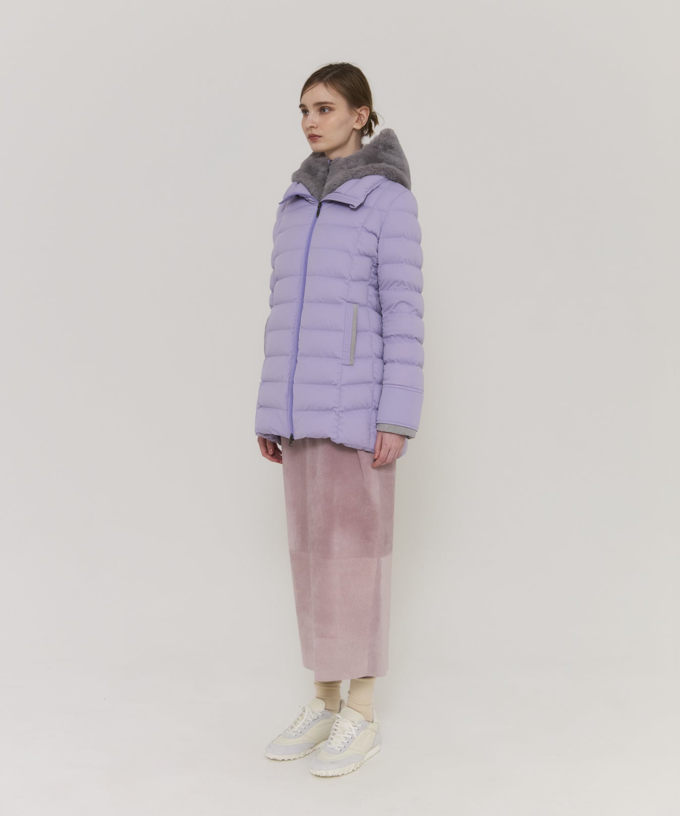 フェイクファーを外しスタンドカラーコートとしても着用可能で、シーンに合わせて着方を選べます。