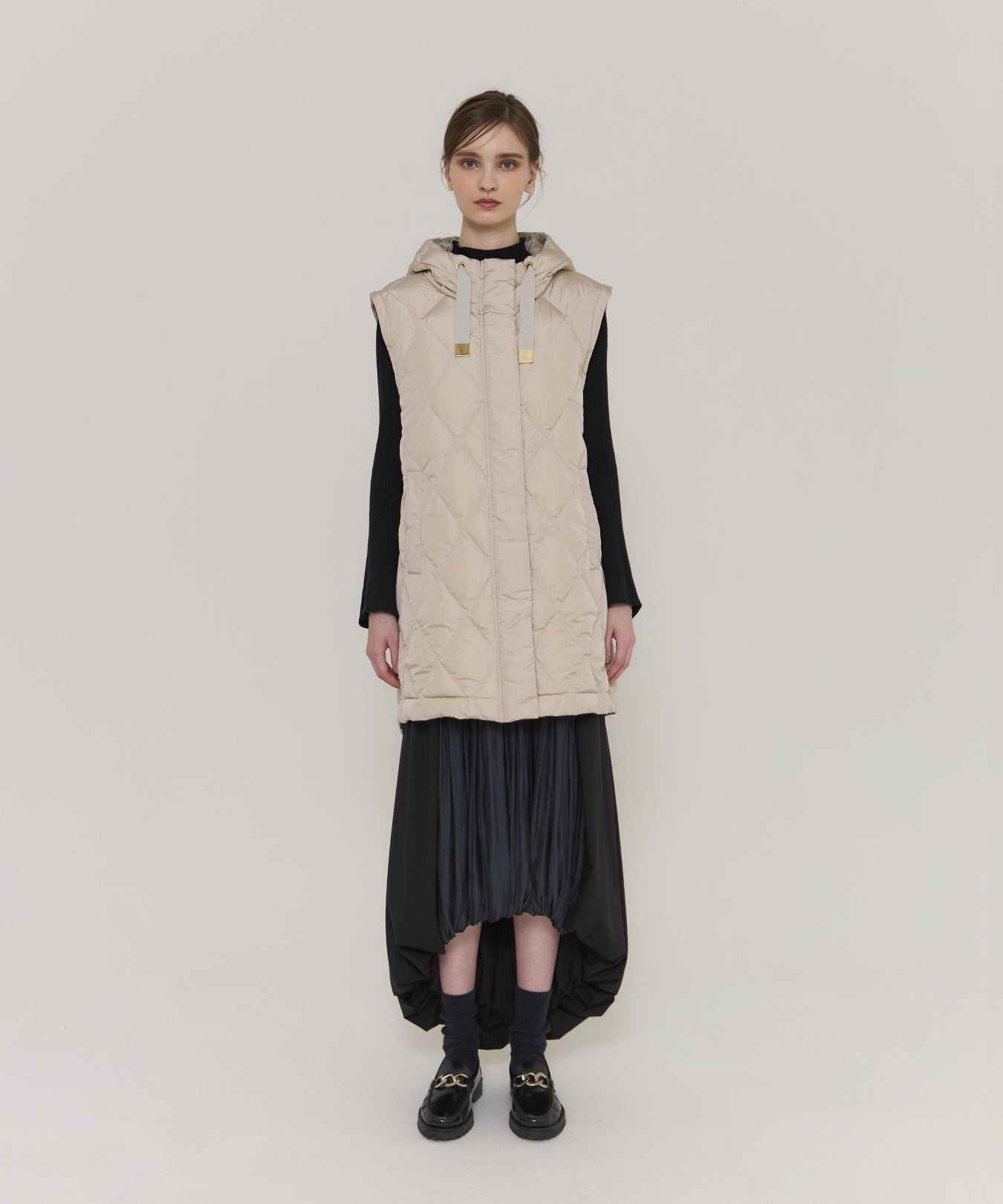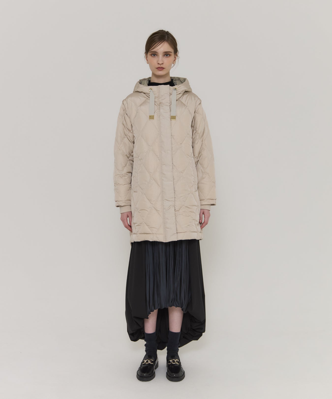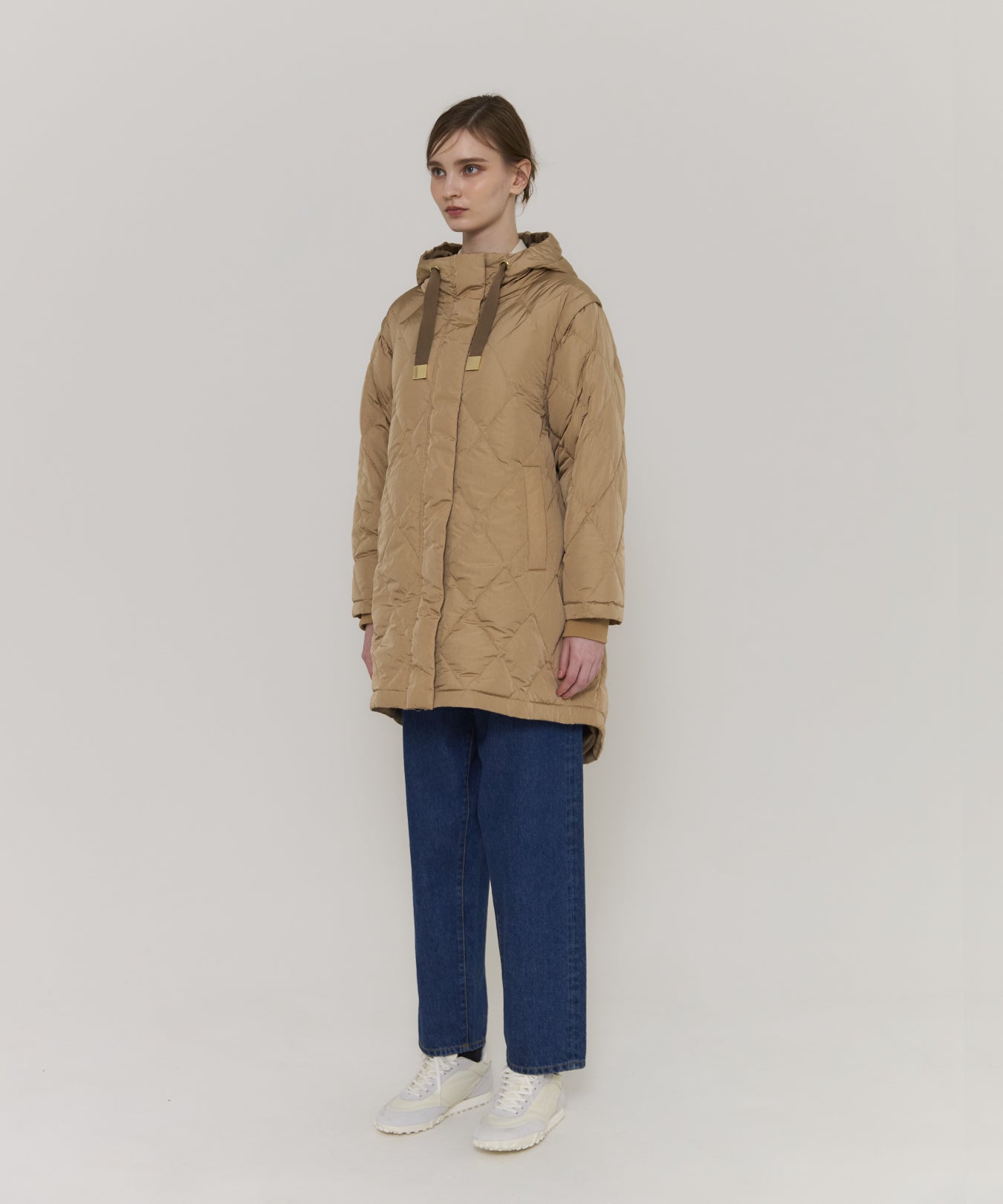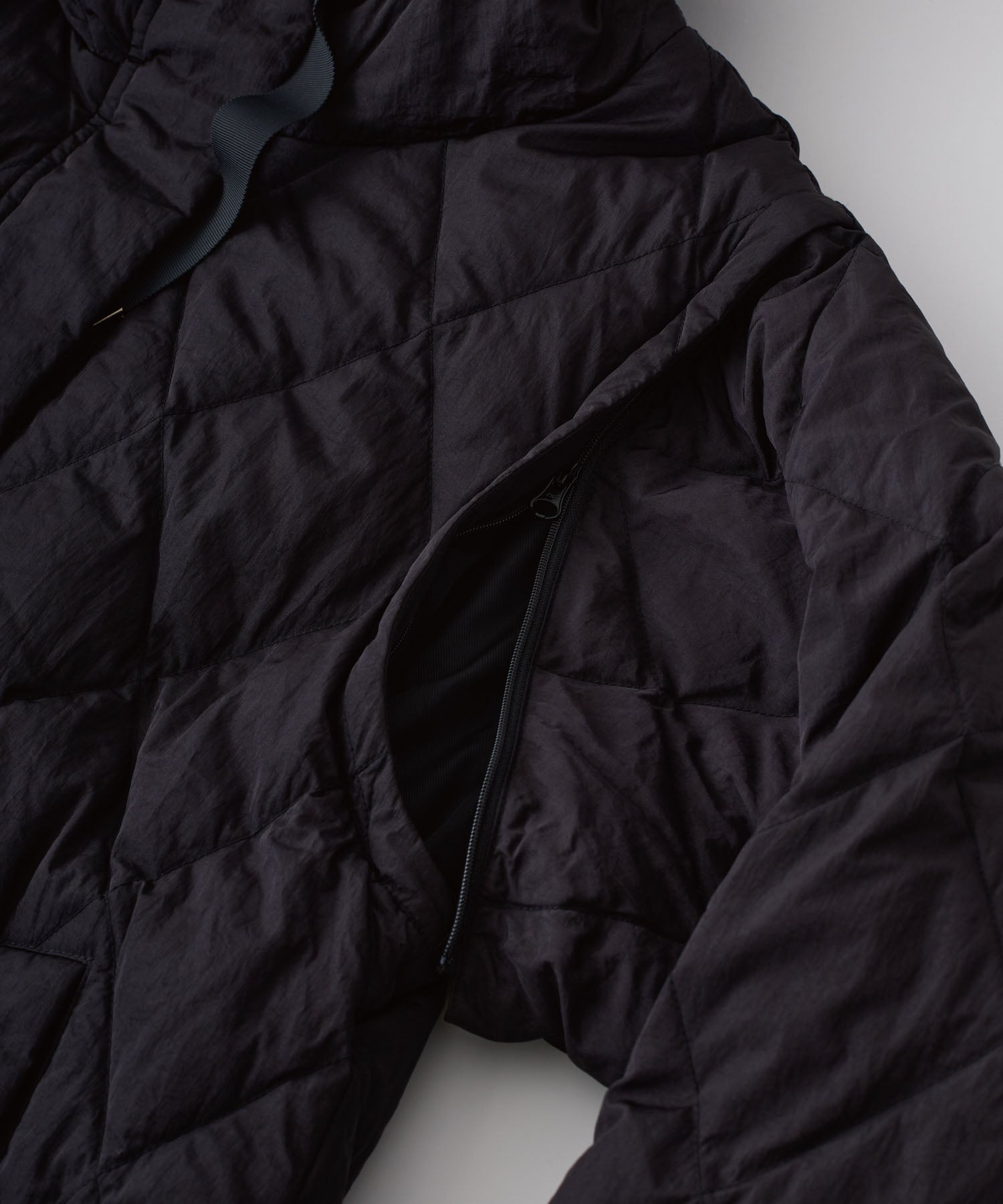 程よいボリュームとゆったりとしたシルエットで、中に着る洋服を選びません。袖は取り外し可能でロングベストとしても着用でき、2wayでより長いシーズンお使いいただけます。