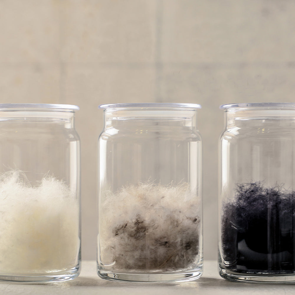 そこでダウン(羽毛)やフェザーを、ブラックに染色する方法を開発しました。