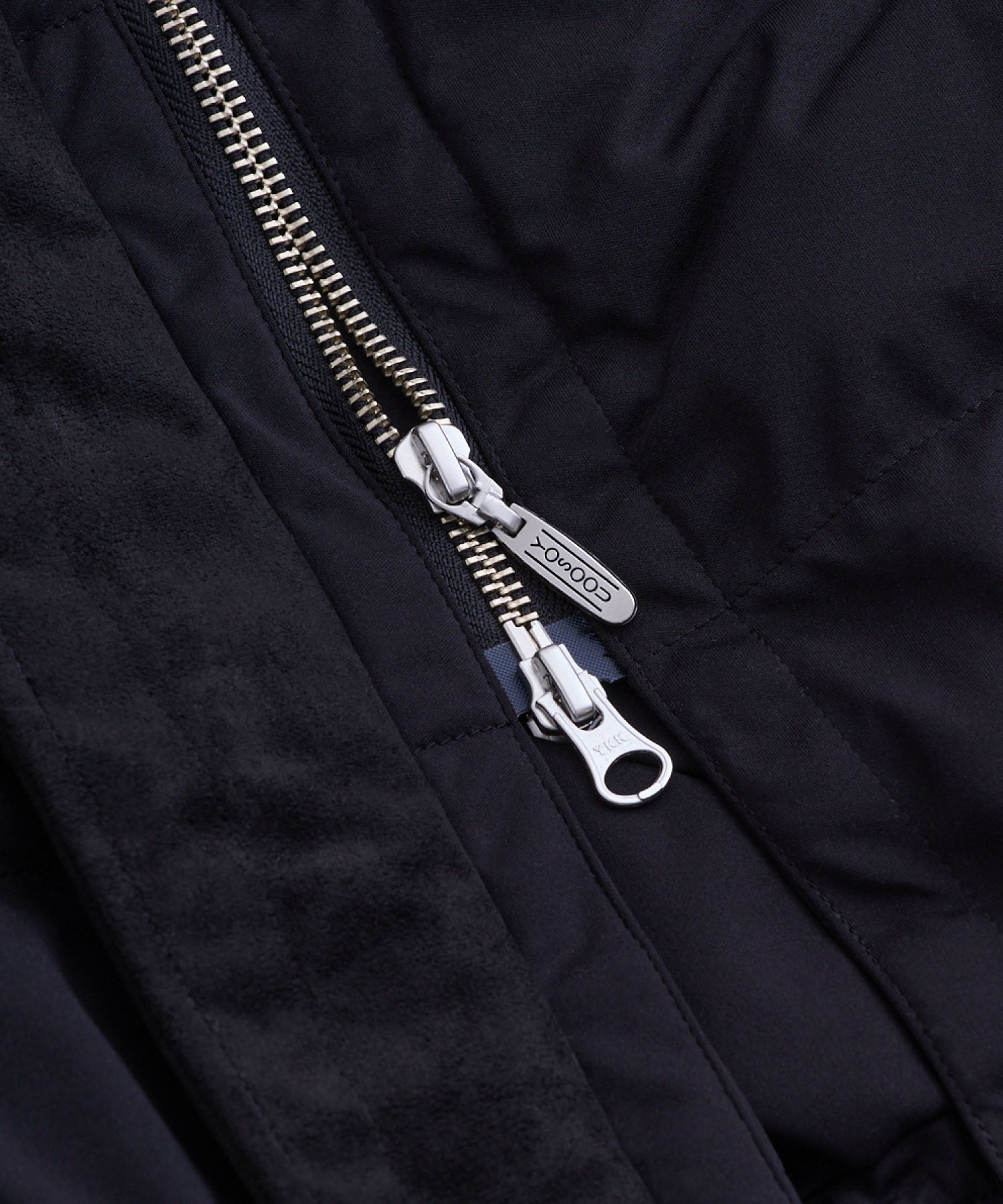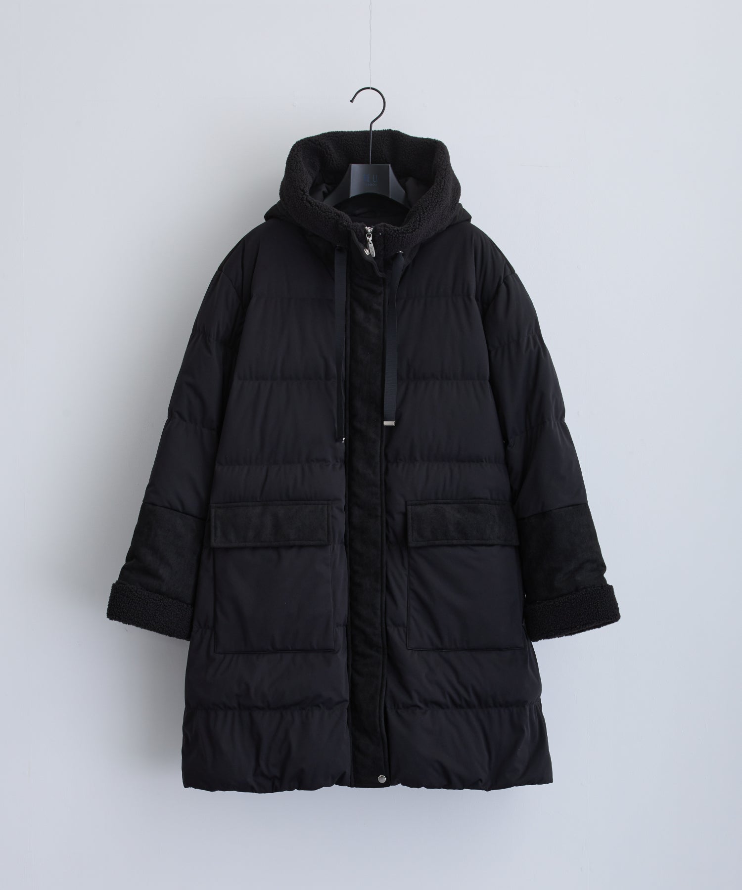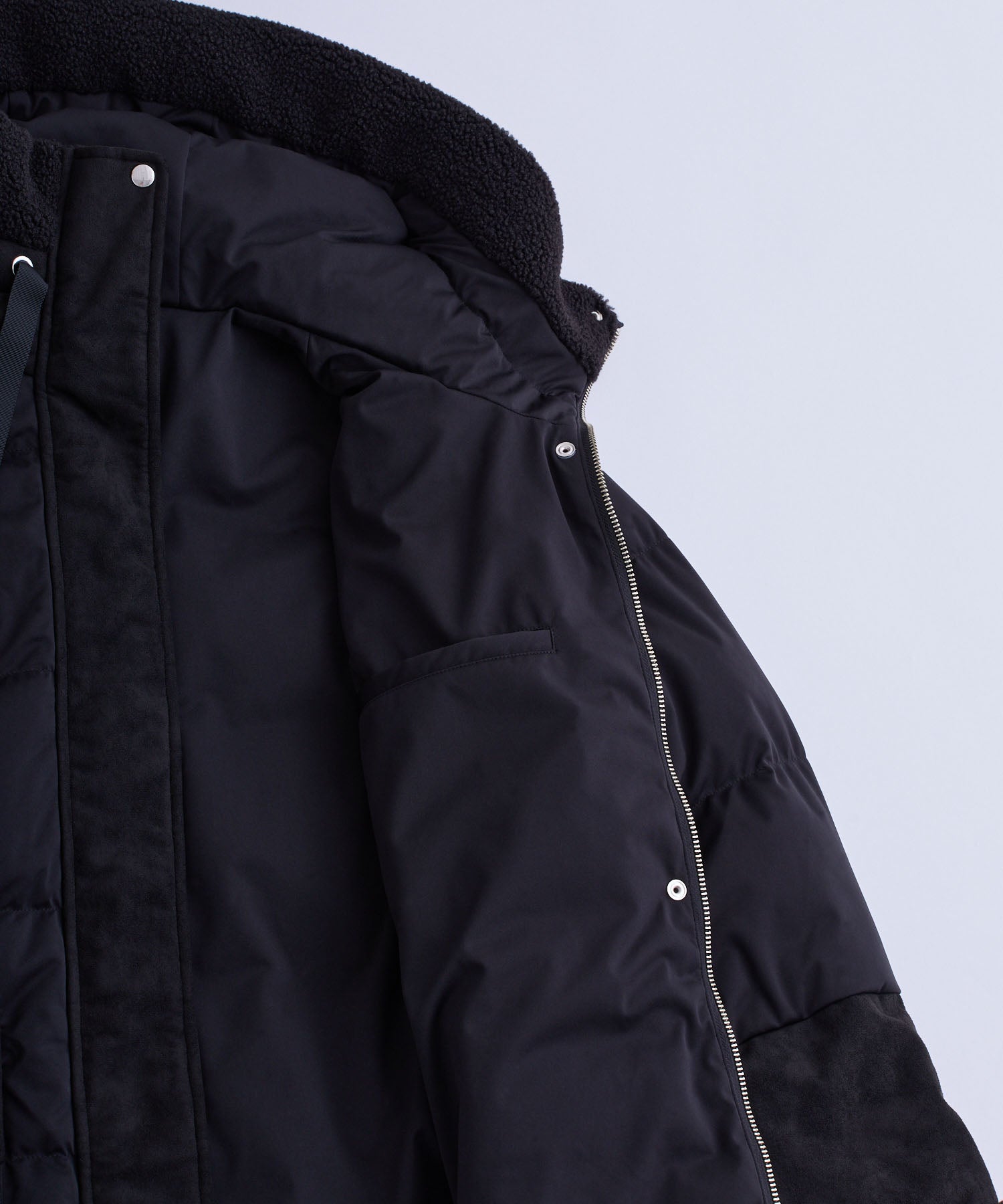 ボアとフェイクスエードのドッキングが特徴のハーフコート。