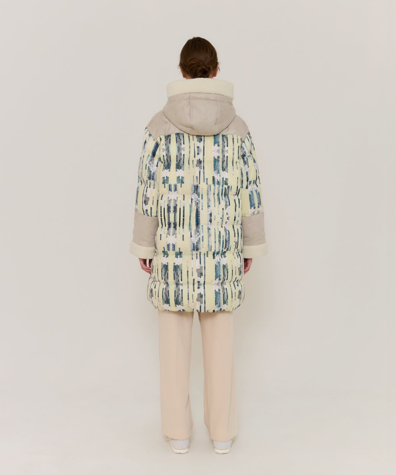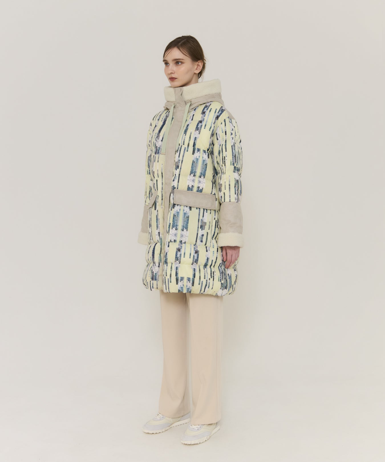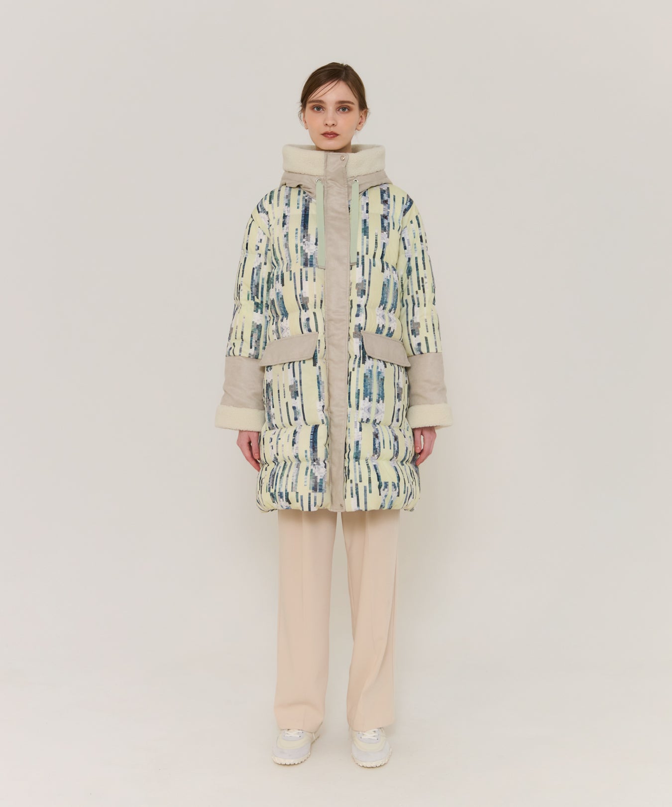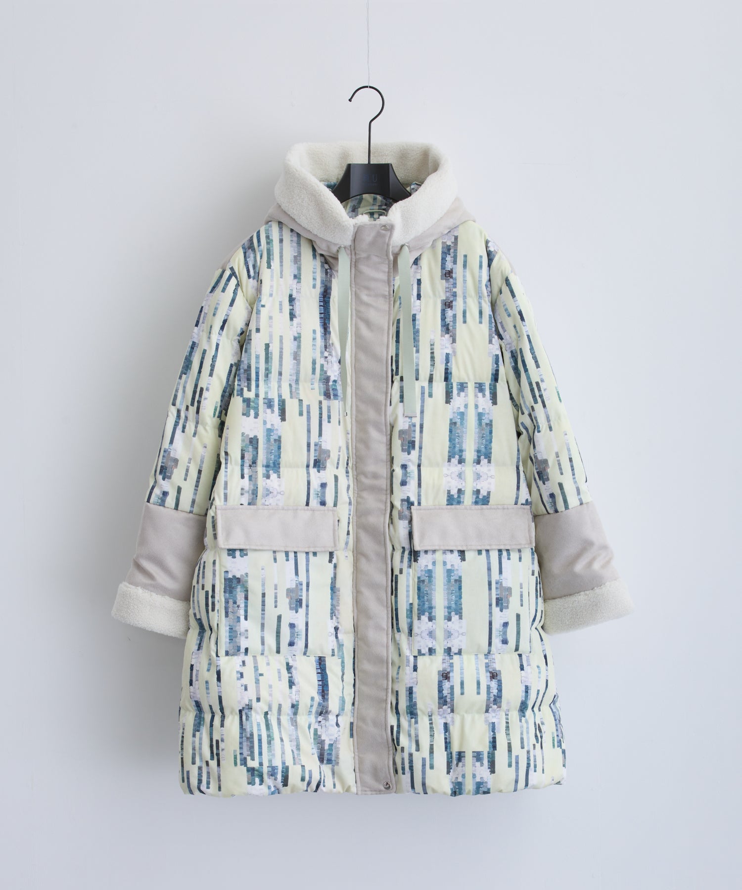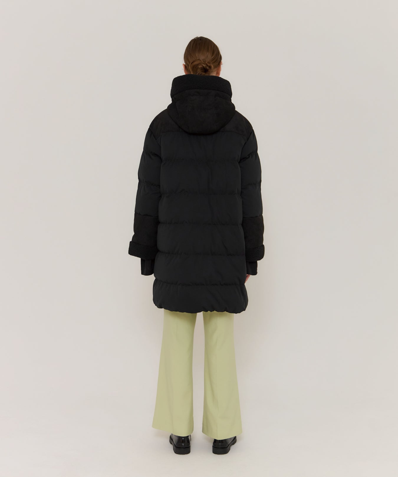 高さのあるスタンドフードは内側までしっかりとボアをあしらうことで、襟周りを温かく包み込みます。