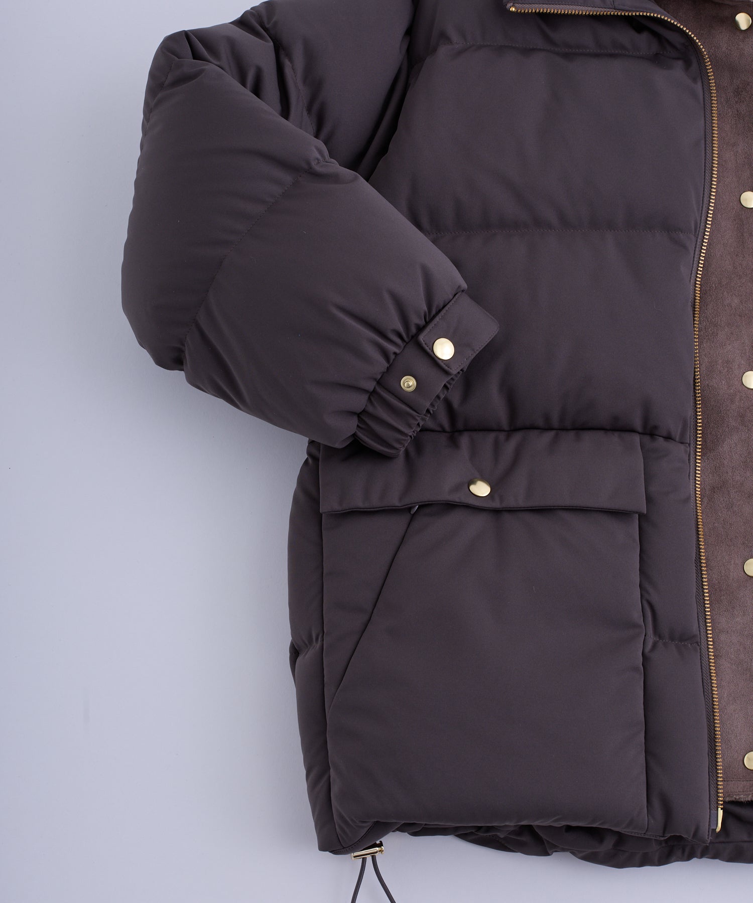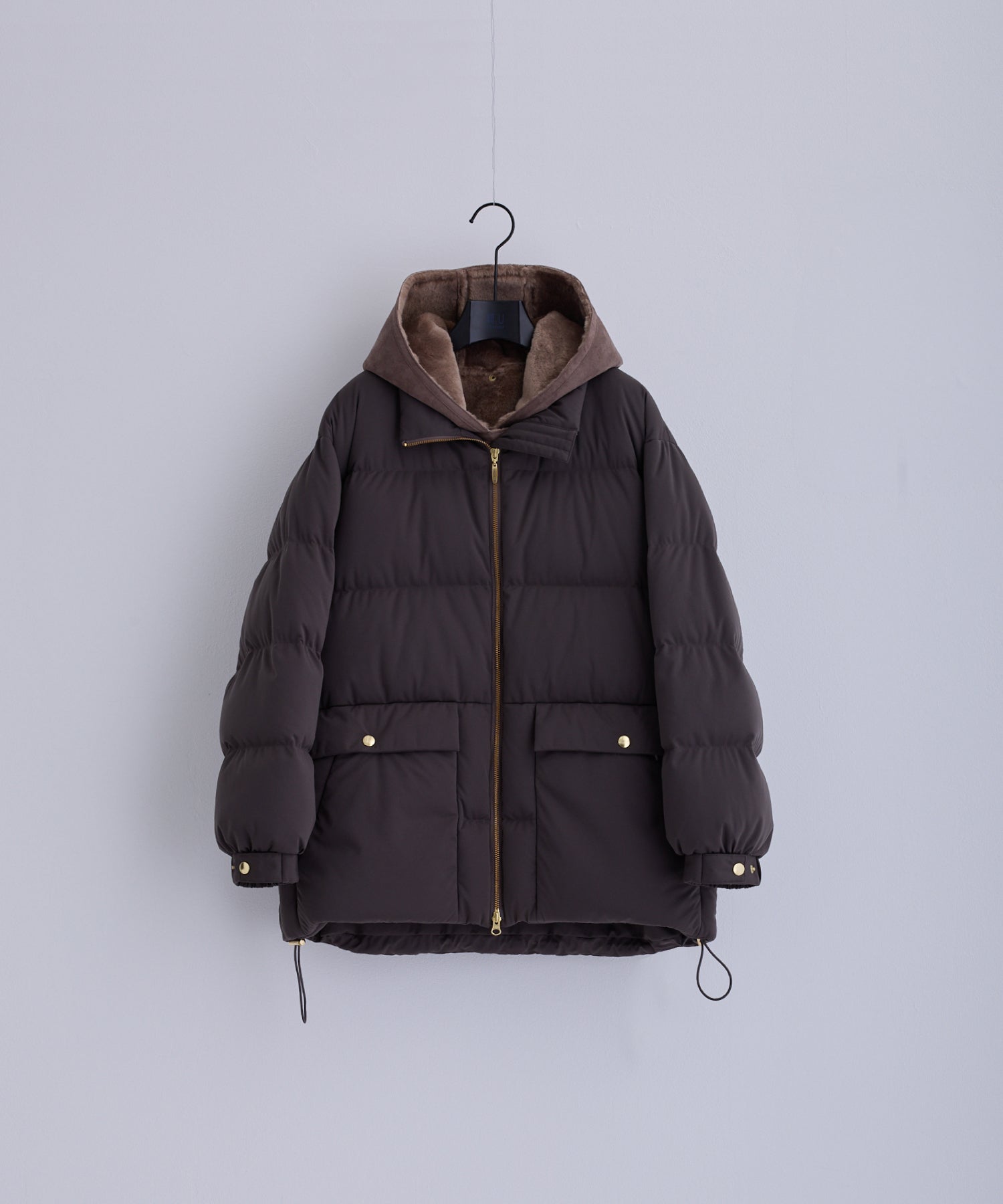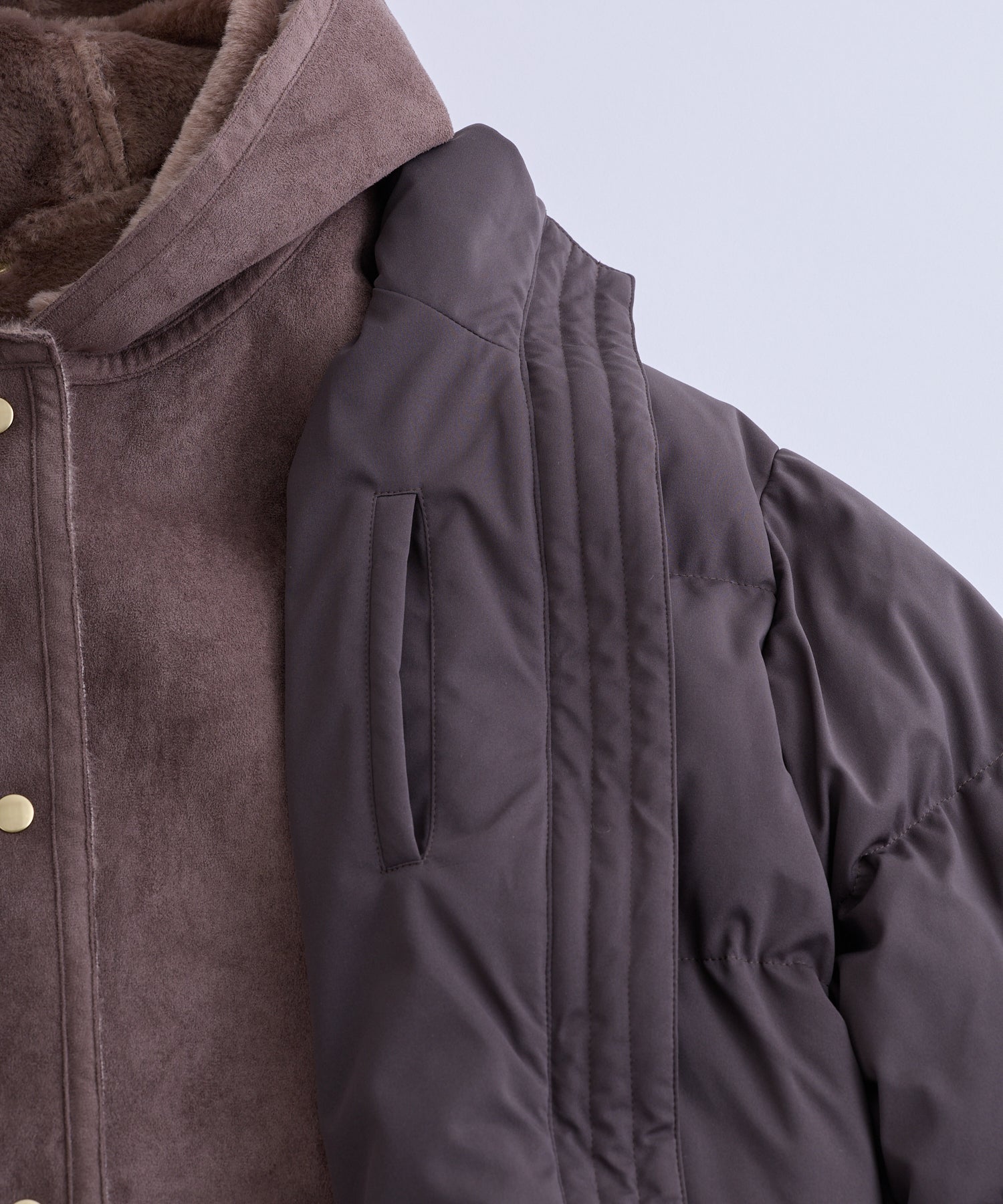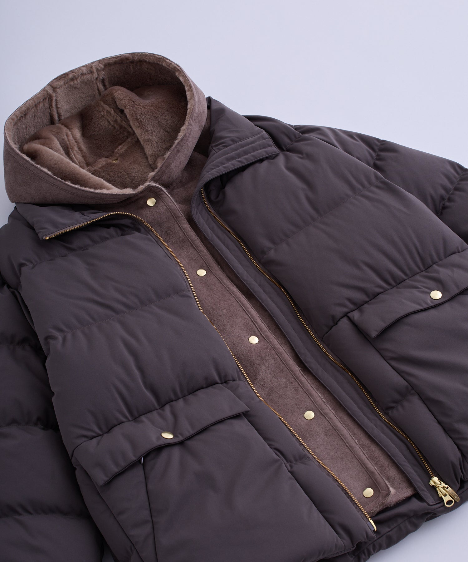 フロントファスナーを開けたときに見えるフェイクムートンが、レイヤードを思わせる洗練されたデザイン。