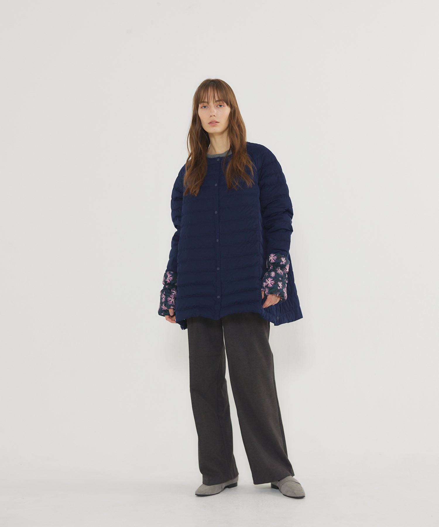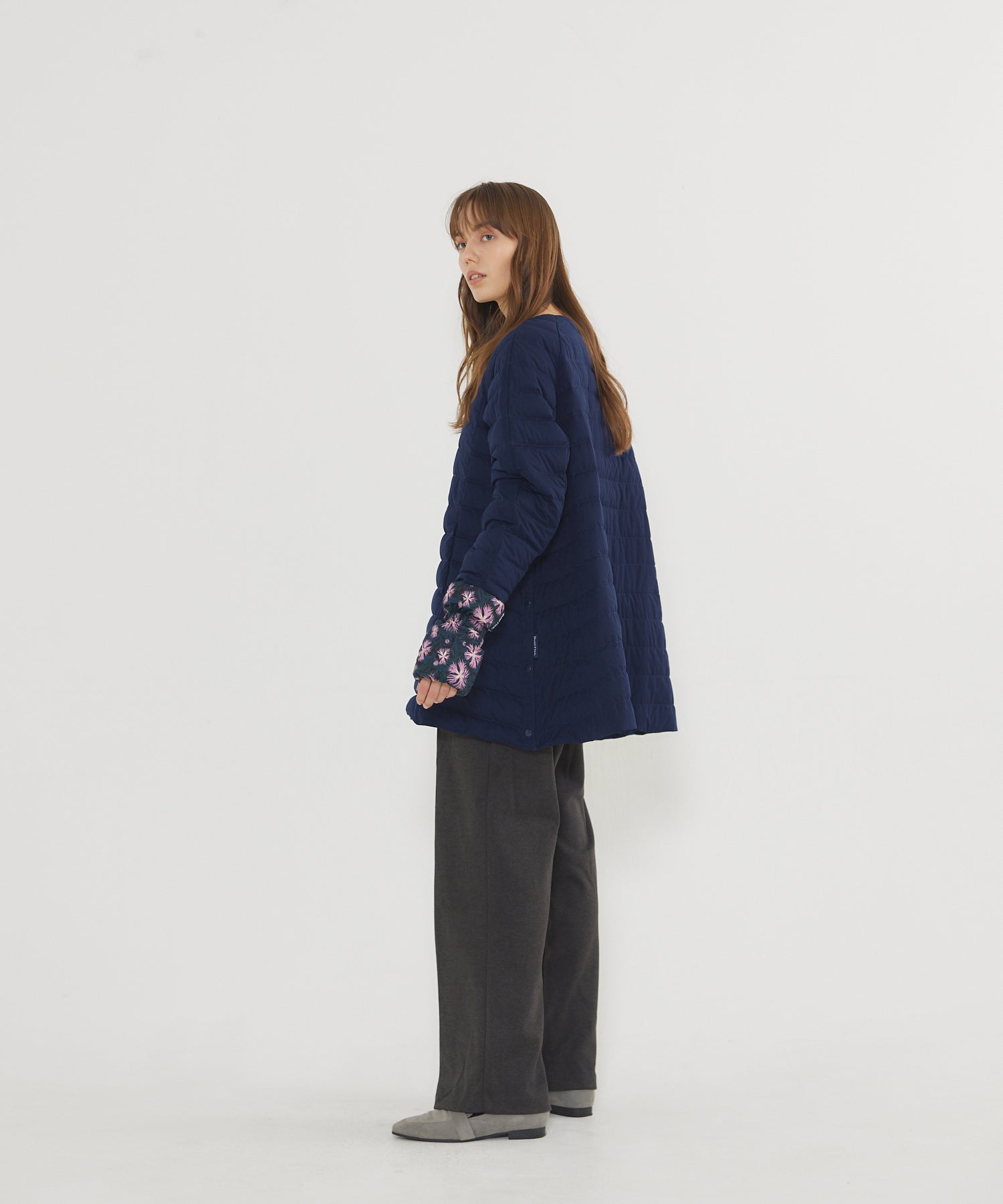 粧Uライトダウンシリーズのデザイン性に優れたハーフコート。